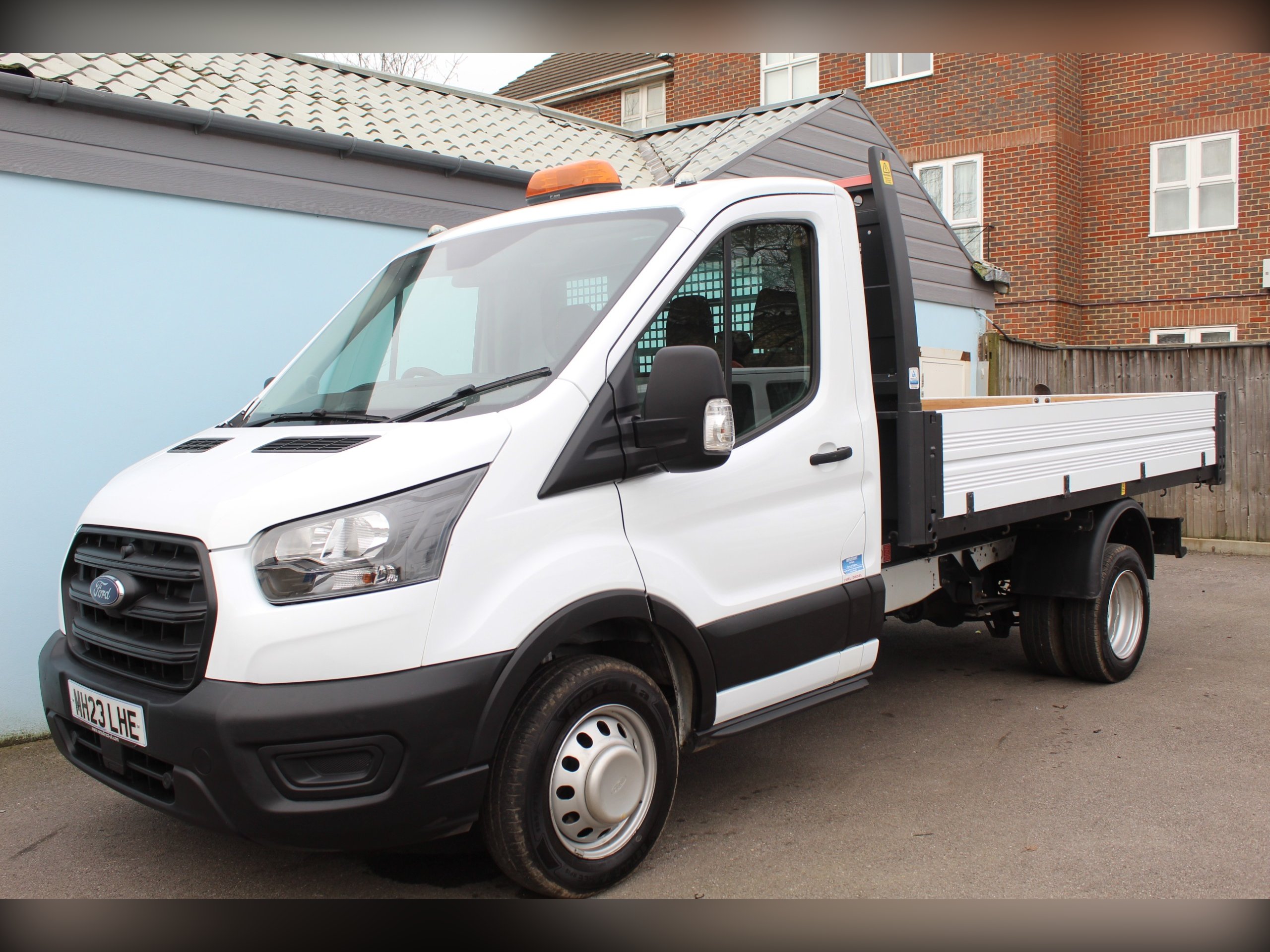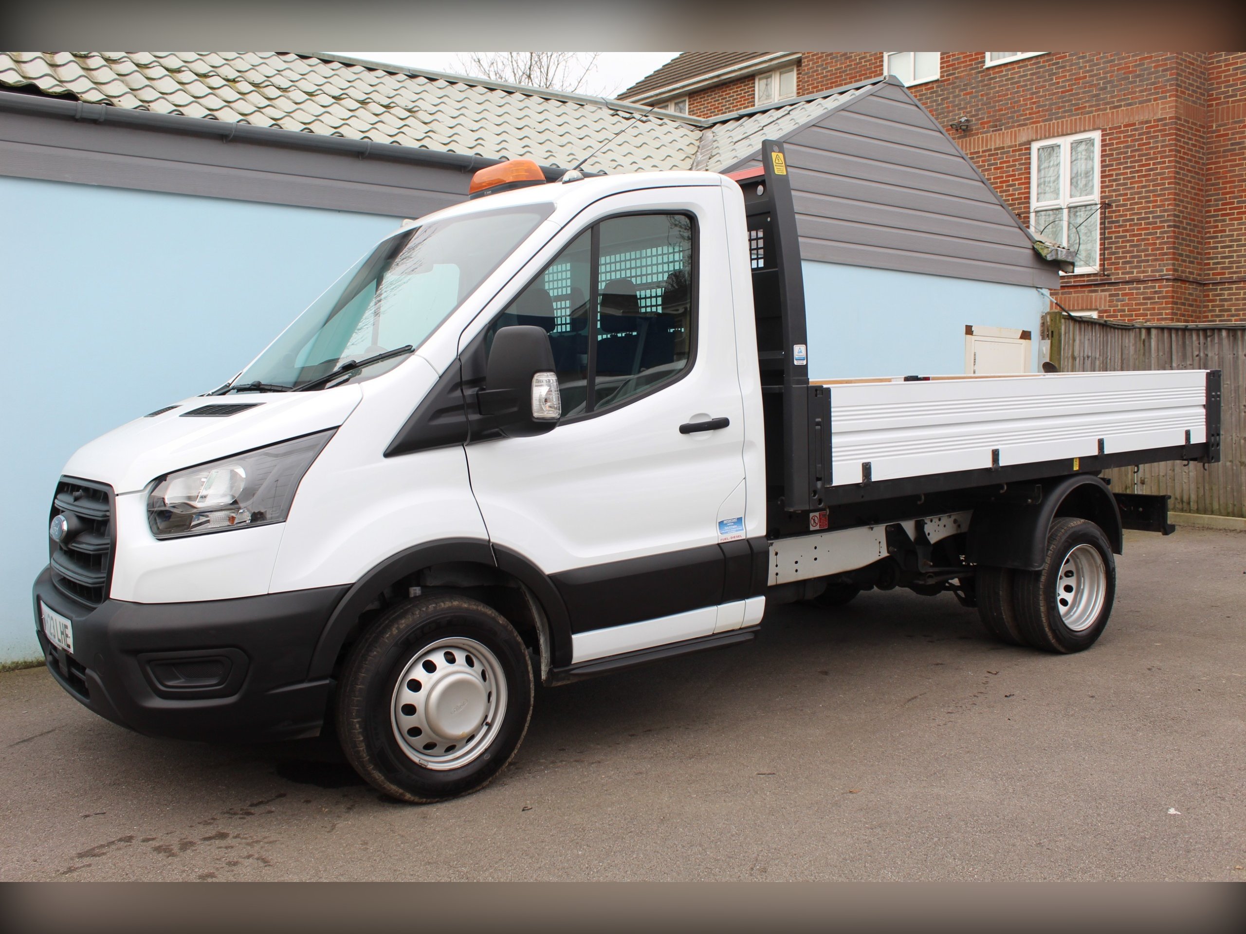 This 2023/23 Ford Transit 350 Leader 2.0 tdci 130 Twin Rear Wheel MWB Tipper has covered a Mileage of Just 24074 Miles. A EURO 6 ULEZ Compliant Model Finished in White and Equipped Air Conditioning, Ingemex Body, Bluetooth and Electric Pack.